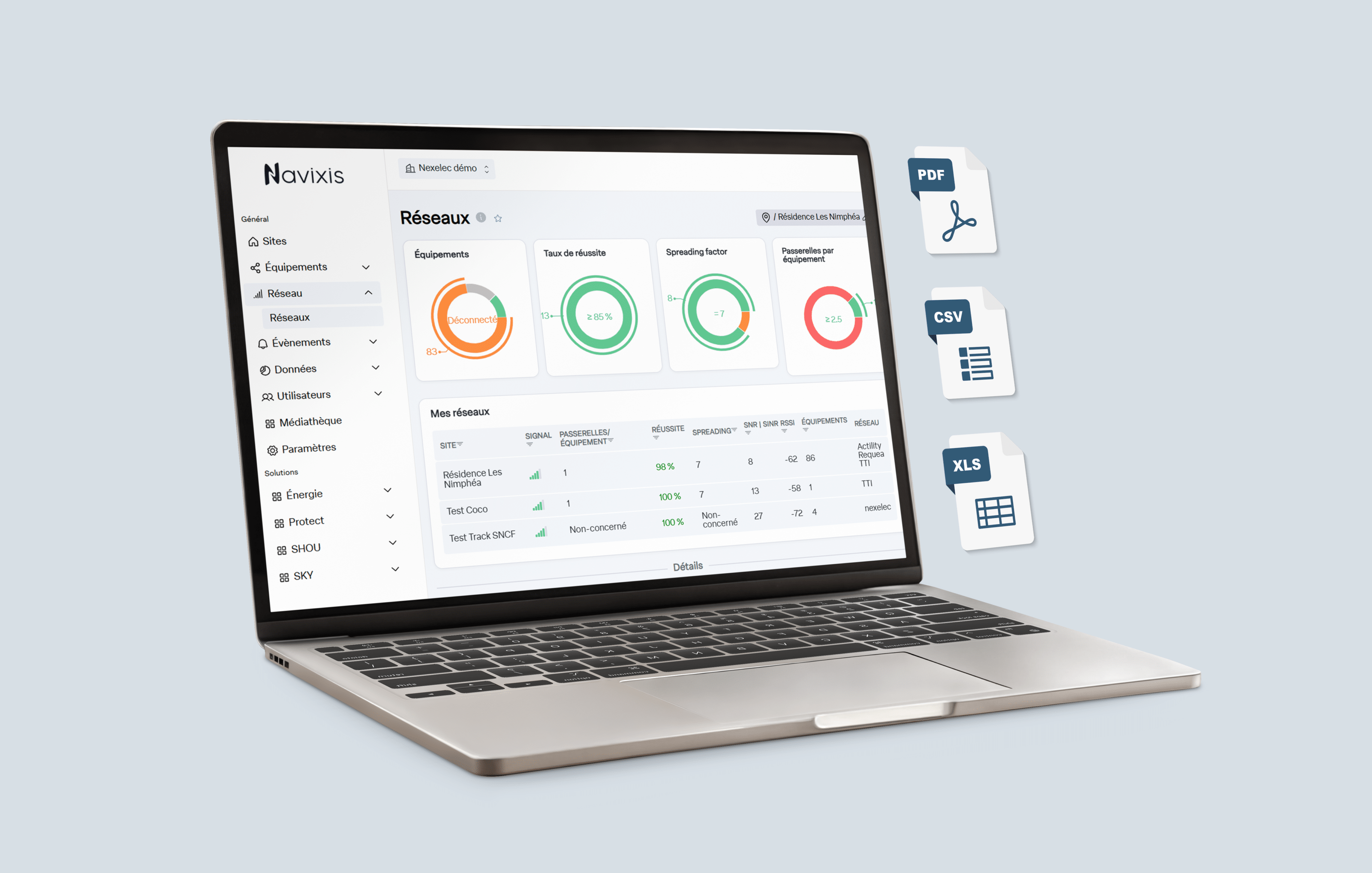 NAVIXIS permite conectar rápidamente cualquier tipo de equipo gracias a su compatibilidad con los principales protocolos de comunicación del mercado (LoRaWAN, BACnet, etc.). La implementación es sencilla, escalable y no requiere ninguna infraestructura compleja.